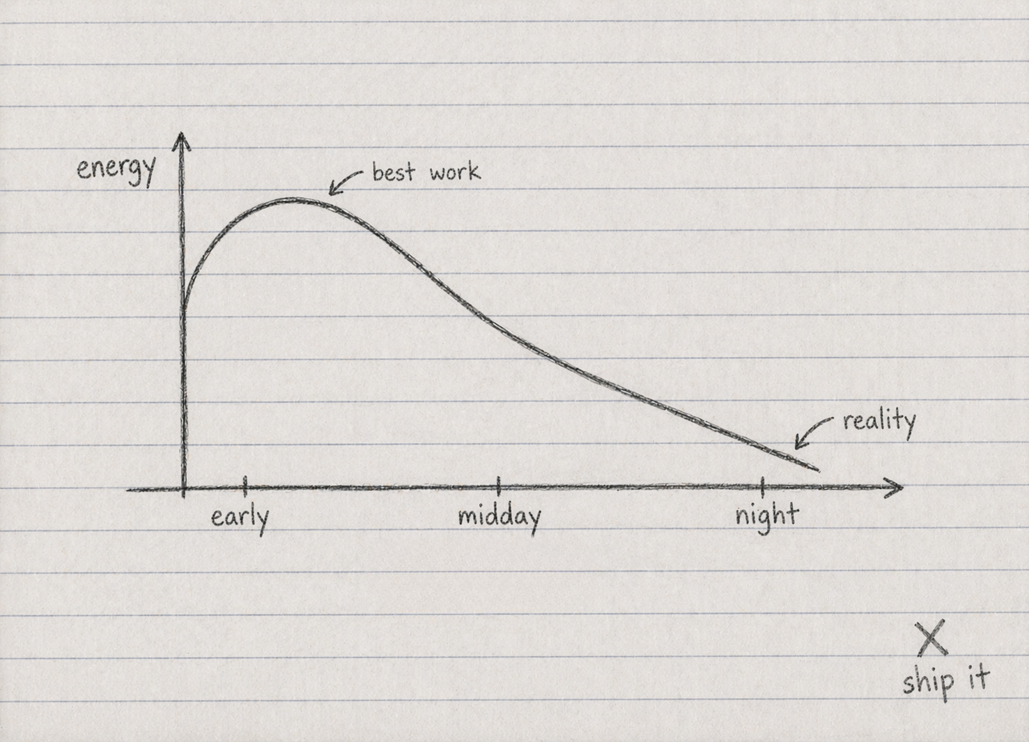 The graph feels like my life. The energy and then the slow release to the point where thinking (deeply or about anything) is not an option. But you show up. You build something that has value to you and may change your future.